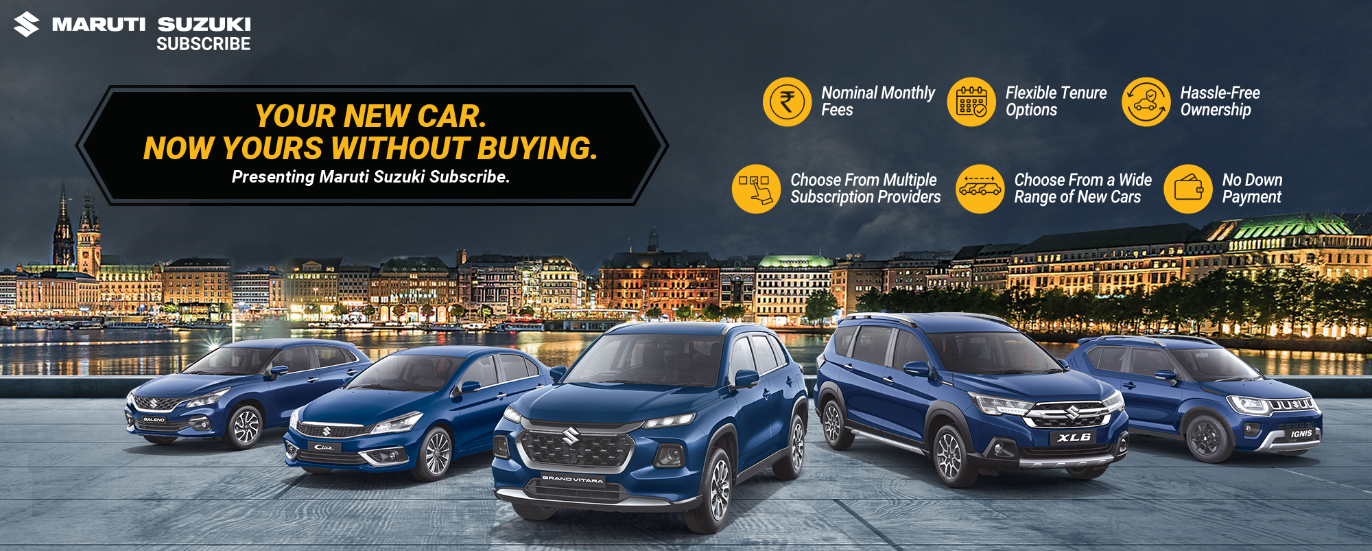 Maruti Suzuki Subscribe enables all customers to enjoy driving their preferred Maruti Suzuki cars without having to deal with all the financial responsibilities that come with owning a car.All you need to do is opt for a monthly subscription plan at a fixed monthly fee, which includes the routine maintenance and insurance costs, and choose a flexible tenure. At Shivam Autozone in, Boisar East, Boisar, all Hatchback, Sedan, SUV, the MUV models line-up includes Baleno, Invicto, EVitara, Jimny, Ciaz, Ignis, Fronx, Grand Vitara, XL6. Here, you will enjoy Maruti Suzuki Subscribe benefits such as: